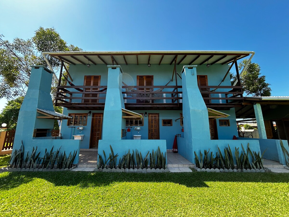 Casa geminada super aconchegante, a apenas 100m da praia (2 min a pé), perfeita para relaxar com conforto e praticidade. Possui 2 quartos com ar-condicionado quente/frio, churrasqueira privativa, Wi-Fi rápido (500 Mbps), itens de praia e 1 vaga de garagem. Localização tranquila na Meia Praia, em Navegantes, com fácil acesso à mercados, restaurantes, às praias da região e ao aeroporto. Ideal para famílias, casais e amigos!
