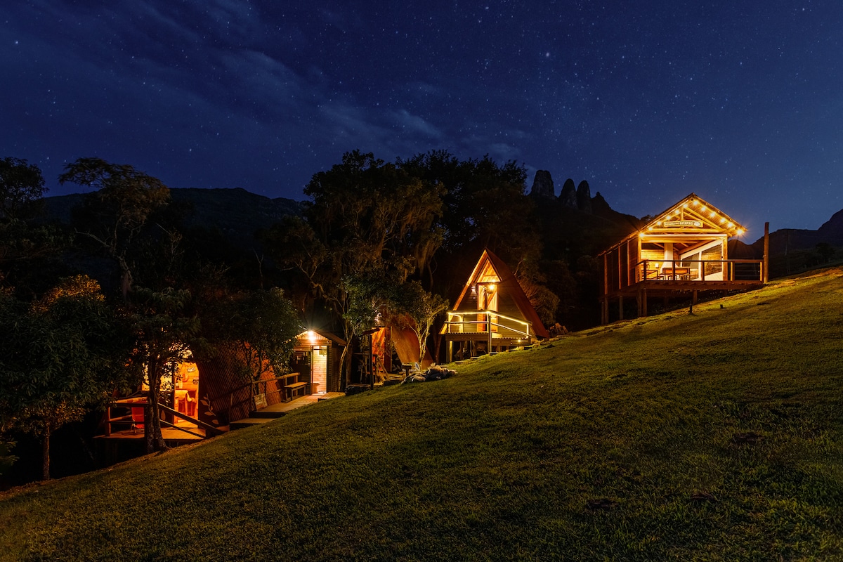 Confraternize e relaxe com seus amigos/família nesta acomodação que abraça a natureza ! As cabanas Araras ficam dentro do parque, em meio a arvores e a poucos metros do famoso portal de chegada dos trilheiros de Soldados Sebold. O local é rodeado de trilhas espetaculares e com um PUB da montanha próximo! São 3 cabanas rústicas que proporcionam aconchego e conforto e uma Área Gourmet completa (Ninho das Araras) para juntar a turma para aquele churrasco!