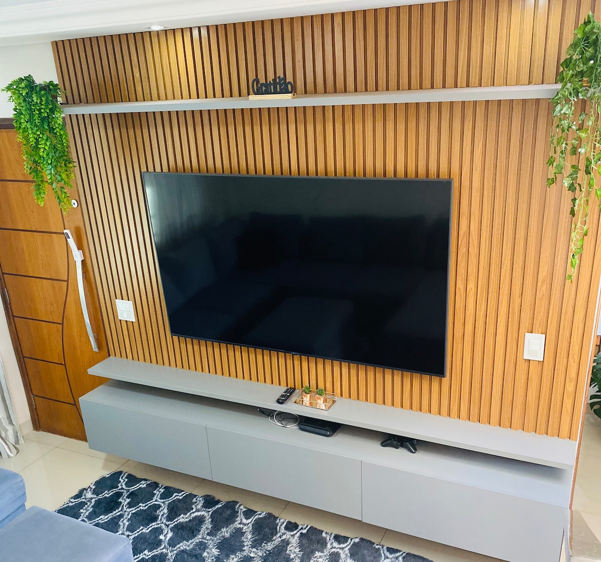 • Quarto 1- Cama box casal, ar LG, Tv 32 poleg, guarda roupas com cabides, Ferro de passar moderno, abajur, Wi-Fi,espelho. • Quarto 2- Cama box solteiro, Ar, berço, banheira com trocador, guarda roupas com cabide, cômoda. • Sala- Sofá retrátil que se estende, tv 52 polegadas a cabo mais de 400 canais. • Cozinha- Utensílios novos , cooktop elétrico a gás, geladeira, refrigerador, cafeteira três corações, microondas, liquidificador, mesa 4 cadeiras. • Garagem Fechada. • Estacionamento gratuito