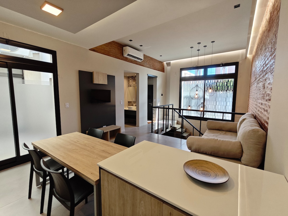 Disfrutá de la comodidad de este alojamiento a pocas cuadras del microcentro, ideal para viajes de trabajo, escapadas en pareja o pasar unos días a conocer la ciudad. El espacio cuenta con: • 🛏️ Habitación con cama matrimonial • 🛋️ Sofá cama en el living para huéspedes adicionales • ❄️ 2 aires acondicionados frío/calor • 🍳 Cocina equipada • 🚿 Baño y lavamanos separados • 📺 WiFi y TV • 🚗 Cochera privada y techada para autos, no camionetas grandeos