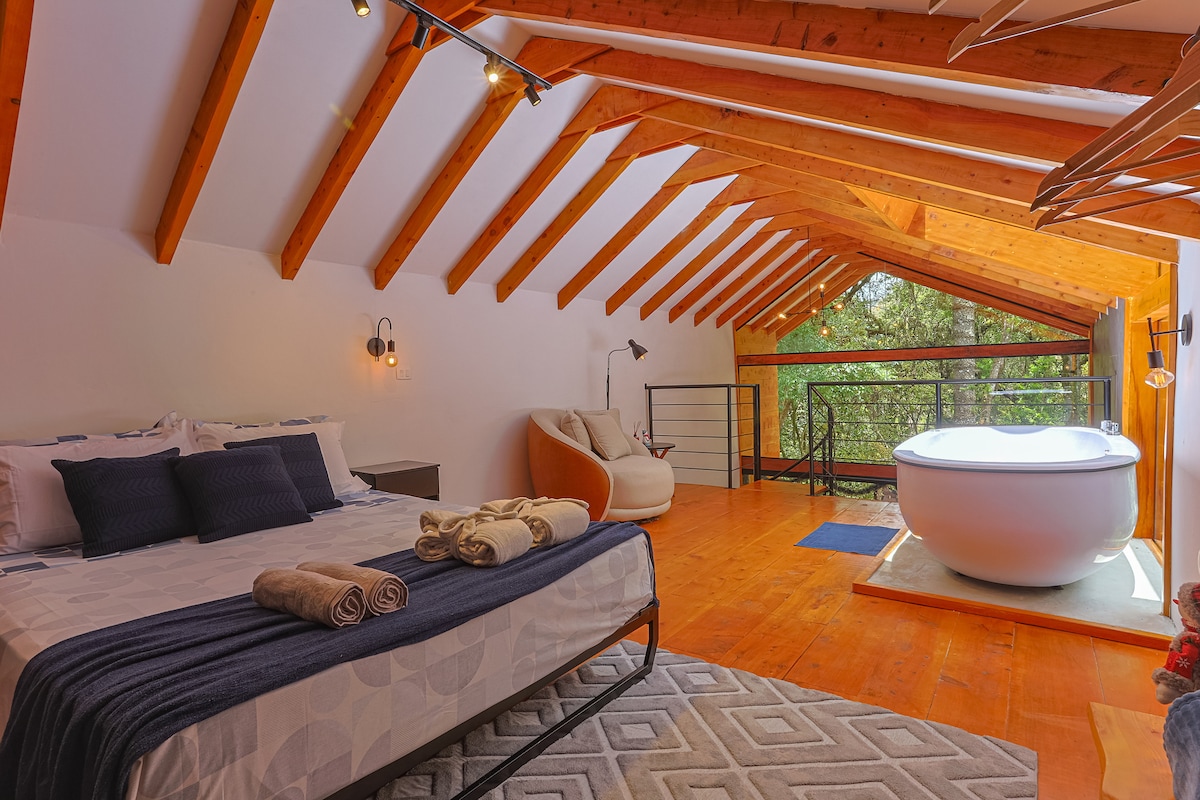 -✅5km do centro turístico. -✅ Cozinha completa -✅Ar condicionado (quente e frio no quarto) -✅ smartv -✅ banheira de imersão no quarto -✅local para fogueira e churrasco -✅deck com vista. Localizada no Imbiri," o vale encantado ' a cabana está em uma das regiões mais altas de Campos do Jordão! Relaxe na linda banheira de imersão com vista para araucárias.