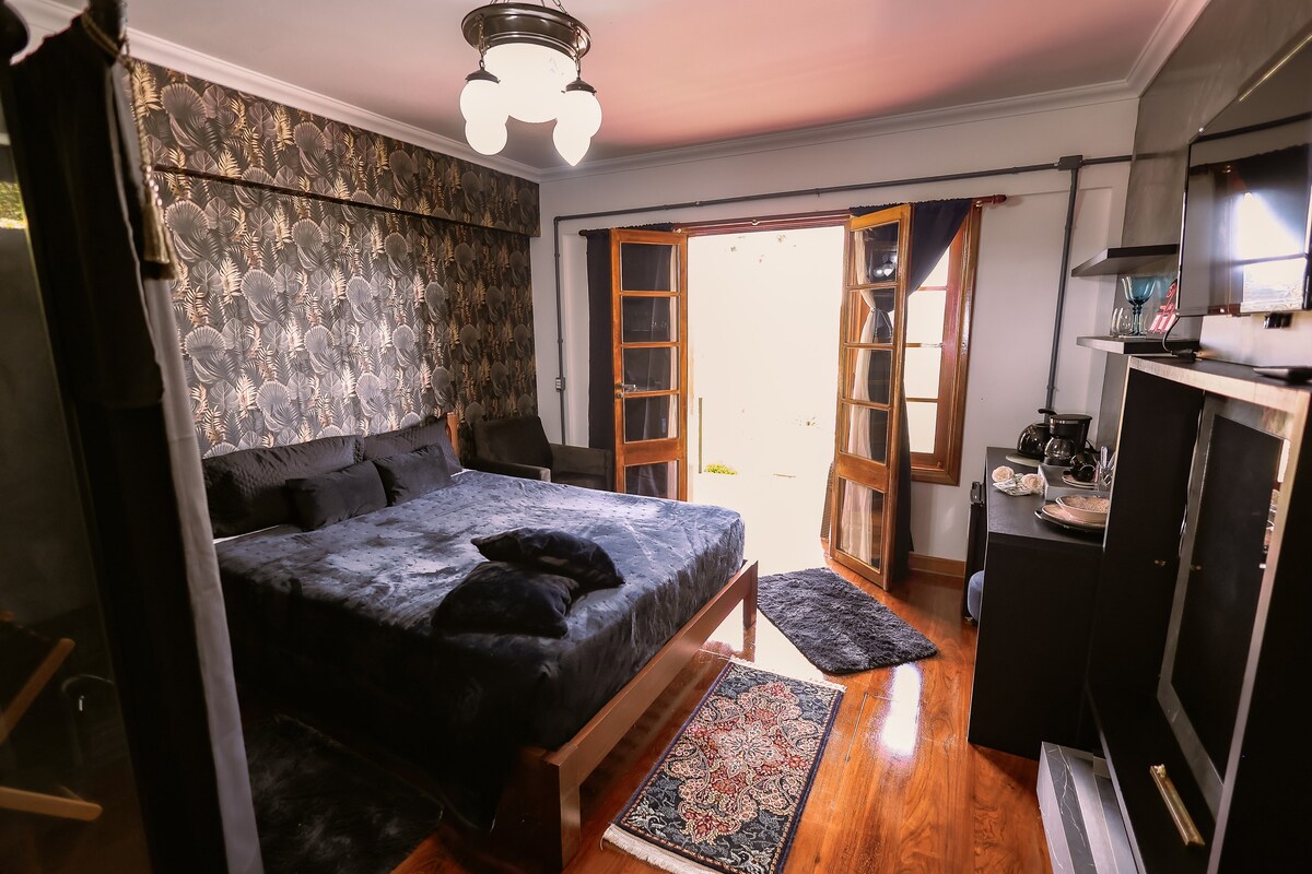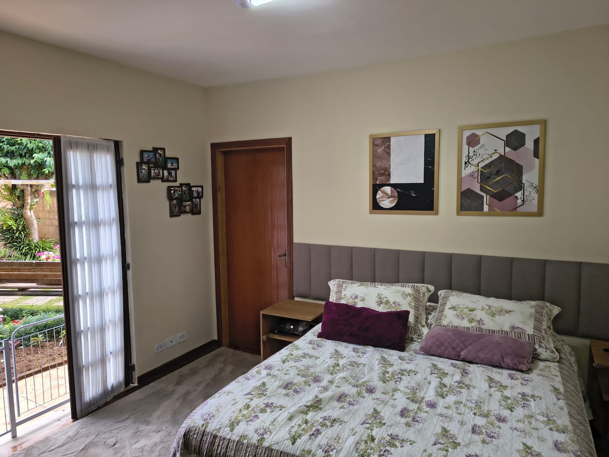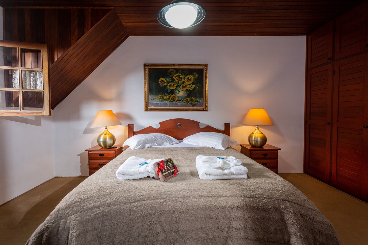 Este quarto para casal oferece muito conforto e uma ótima localização a menos de 5 minutos da Vila Capivari, centro turístico de Campos do Jordão. Apenas a observação de que o acesso aos quartos possui escadas, não sendo recomendada para pessoas com mobilidade reduzida.
