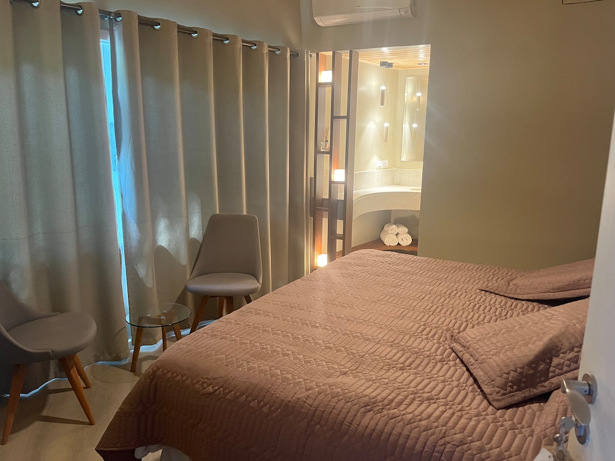 Limpeza, roupa de cama confortável, frigobar e Tv smart, prometendo uma estadia muito agradável. O banheiro é privativo, chuveiro a gás, tudo muito simples, mas muito bem preparado e arrumado para atender você.