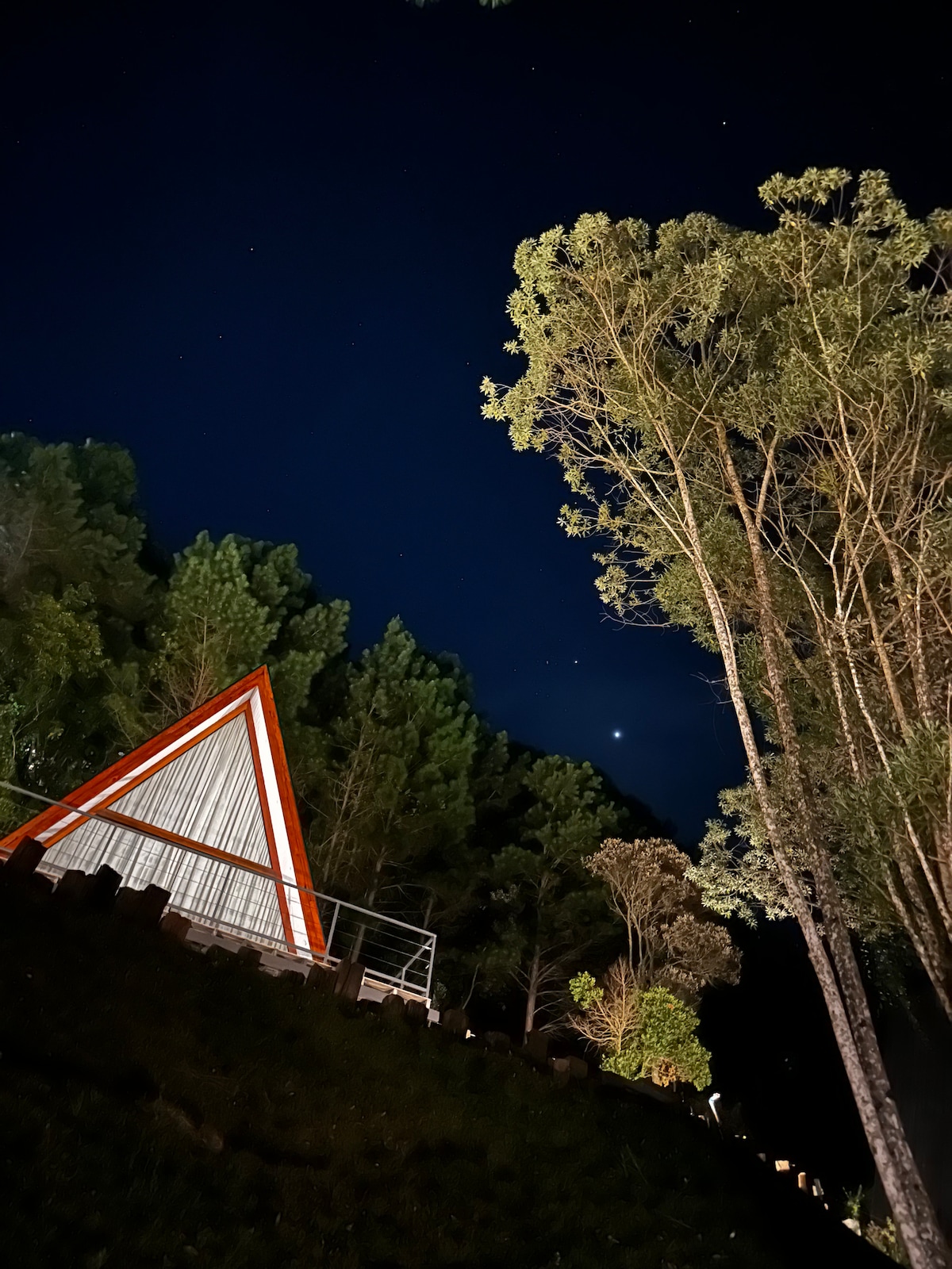 Cabana (privativa) de 72 m2 (Estilo A-frame) com 2 quartos, vista incrível. NÃO SERVIMOS CAFÉ DA MANHÃ NÃO ACEITAMOS PETS NÃO ACEITAMOS CARROS ELÉTRICOS ✔ Lareira ✔ TV Smart 40" ✔ WIFI ✔ Mesa para home office ✔ Cozinha ✔ Água quente na cozinha e banheiro ✔ Berço ✔ Cafeteira Nespresso ✔ Secador de Cabelo ✔ Aparelho de Foundee ✔ Alexa ✔ Hidromassagem com cromoterapia na frente da cabana em vidro Área externa: ✔ Área Gourmet c/ Churrasqueira, pia e mesa ✔ Fogueira ✔ 1 Pergolado ✔ Estacionamento