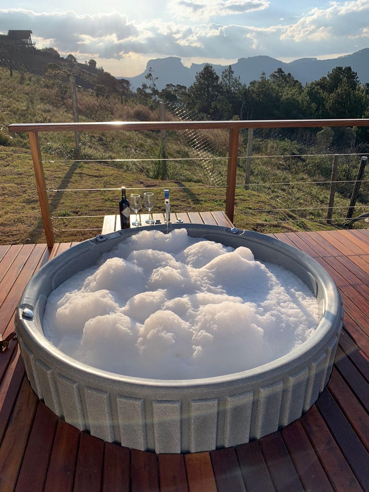 Chalé Vista Privilegiada piscina, sauna e banheira
