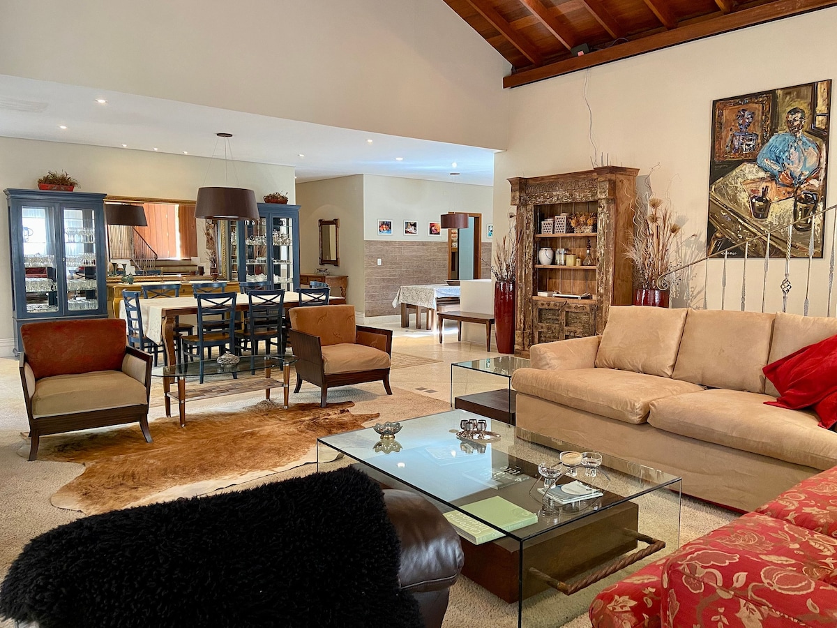 Local privilegiado a 5 minutos do centro de Capivari. Arquitetura com insolação e conforto térmico foram priorizados. Decoração onde foi preservada a atmosfera típica de Campos do Jordão. Equipada com todos os requisitos necessários. Venha fazer um churrasco ou pizza no pavilhão externo acoplado a piscina, jogar futebol ou divertir-se no salão de jogos, apreciar o pôr do sol e à noite fazer uma refeição ao pé da lareira ou na fogueira. Internet alta velocidade e estável para home office