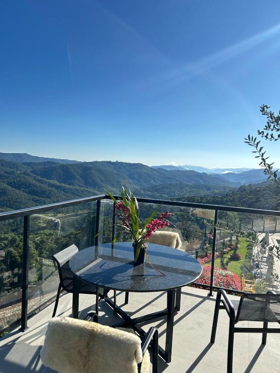Apartamento luxuoso para Casal em Campos do Jordão. Cerca de 600 metros depois do Hotel Santo Cacau. Lugar tranquilo com vista para as montanhas e piscina. Mesmo andar da recepção, com fácil acesso. Piscina climatizada, piscina coberta com sauna, jacuzzi, mini mercado, academia, sala de jogos com bilhar, estacionamento com manobrista, café da manhã com vista deslumbrante…. Enfim, um lugar para se conectar com a natureza e desligar do dia a dia