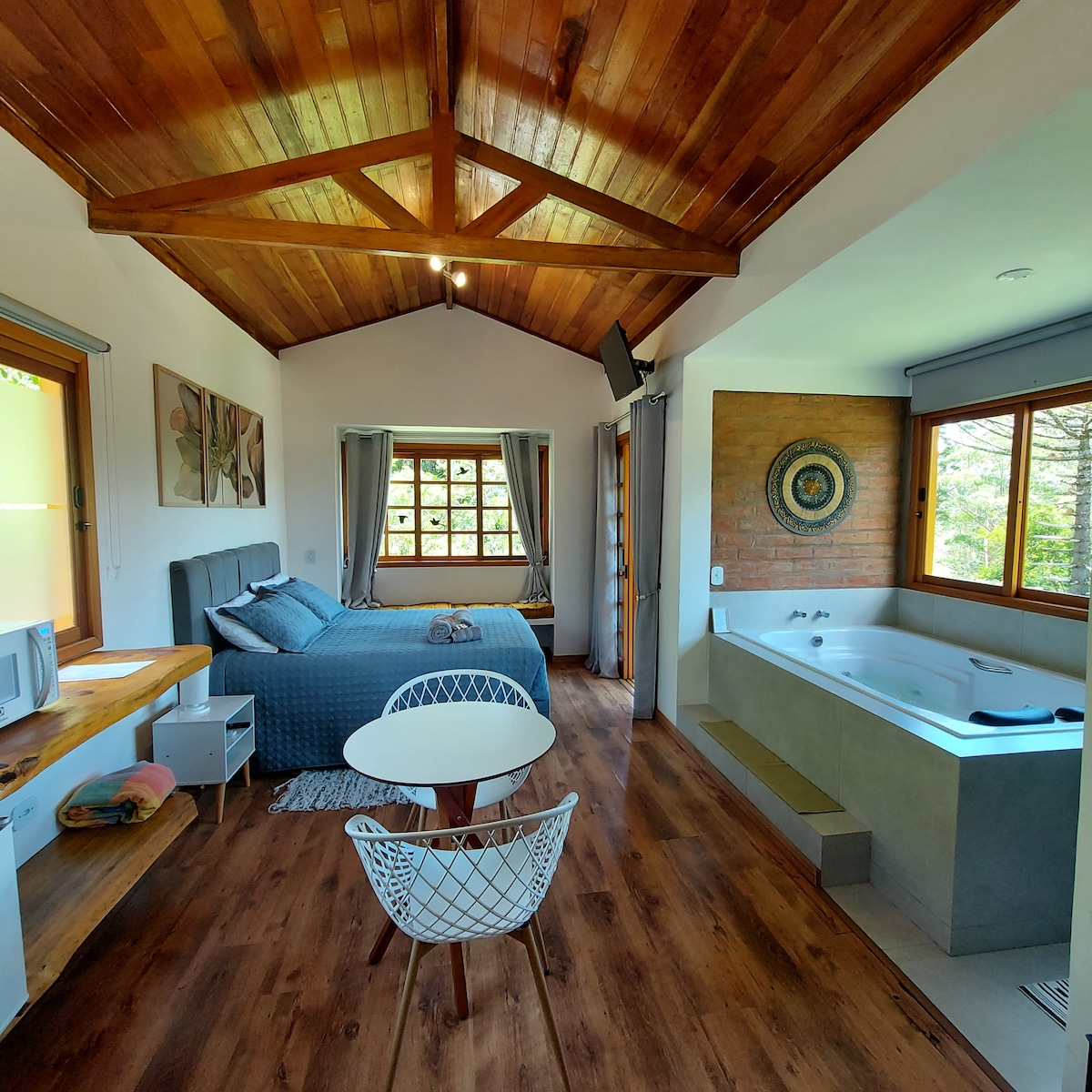 Curta uma experiência incrível,relaxe neste espaço calmo e aconchegante . Edícula Projetada para casais localizada em meio a natureza. Oferece uma mistura de serenidade da montanha e um luxo moderno. Estamos apenas a 8 minutos do centro do Capivari ótima localização .