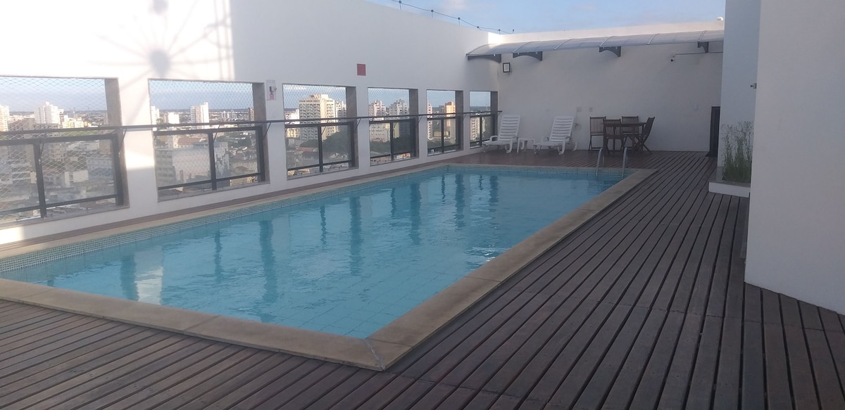 Flat aconchegante, para você deixar o carro na garagem e não se preocupar com o trânsito, pois sua hora vale ouro! Vá a pé para os melhores destinos da cidade! 500m da rodoviária do Centro, 500m do shopping avenida 28, próximo a restaurantes, bancos, comércios em geral. Apto fresco, bem ventilado, com ar condicionado, Smartv, e edifício com piscina, academia, excelentes opções de entretenimento entre amigos e família. 3 flats no américa, opção para pacote, e família de até 10 pessoas.