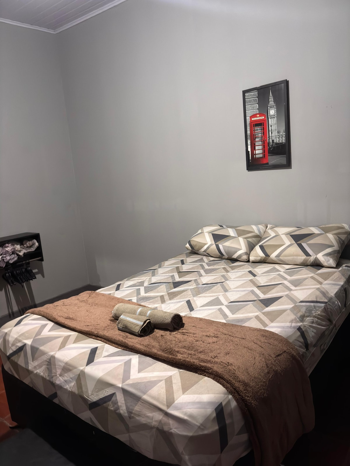Rodeada por montanhas cinematográficas e natureza viva, a Fazenda Esperança oferece uma experiência completa: paisagens incríveis, charme rústico com conforto moderno, e uma energia única de interior. 🛏️ A casa combina móveis de madeira maciça, decoração acolhedora e iluminação natural, com ambientes espaçosos e bem ventilados. São 3 quartos com camas confortáveis, enxoval de qualidade e vista para o verde.