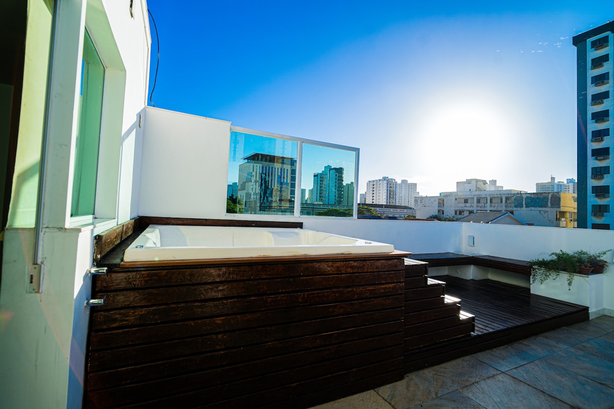 Curta uma experiência elegante neste lugar bem-localizado. Bem próximo de supermercados, padarias, restaurantes e todo tipo de comércio. Melhor localização da cidade com todo o conforto do serviço de um flat. Café da manhã não incluso, mas oferecido pelo restaurante do hotel, bem como almoço e jantar. Academia e sauna no predio. Estacionamento na rua.