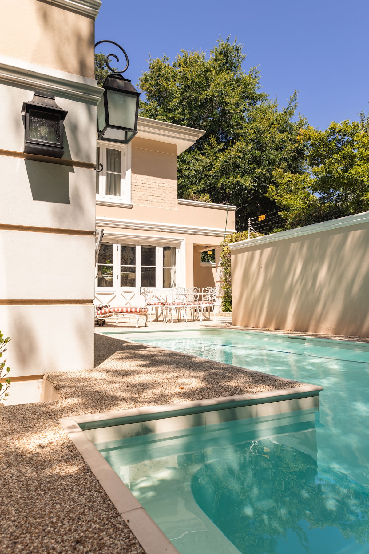 Simply spectacular, newly renovated, spacious home with its own pool offers breathtaking ocean & mountain views. Less than 100 meters to the beach and a short scenic stroll to the famous Camps Bay Promenade with its trendy restaurants & cafes. Comfortably accommodates 10 people with 4 full bathrooms. The home has a new inverter / battery back-up, so functions effectively during any electricity outages (TV's, WiFi, lights, electrical sockets etc). Secure parking is also available