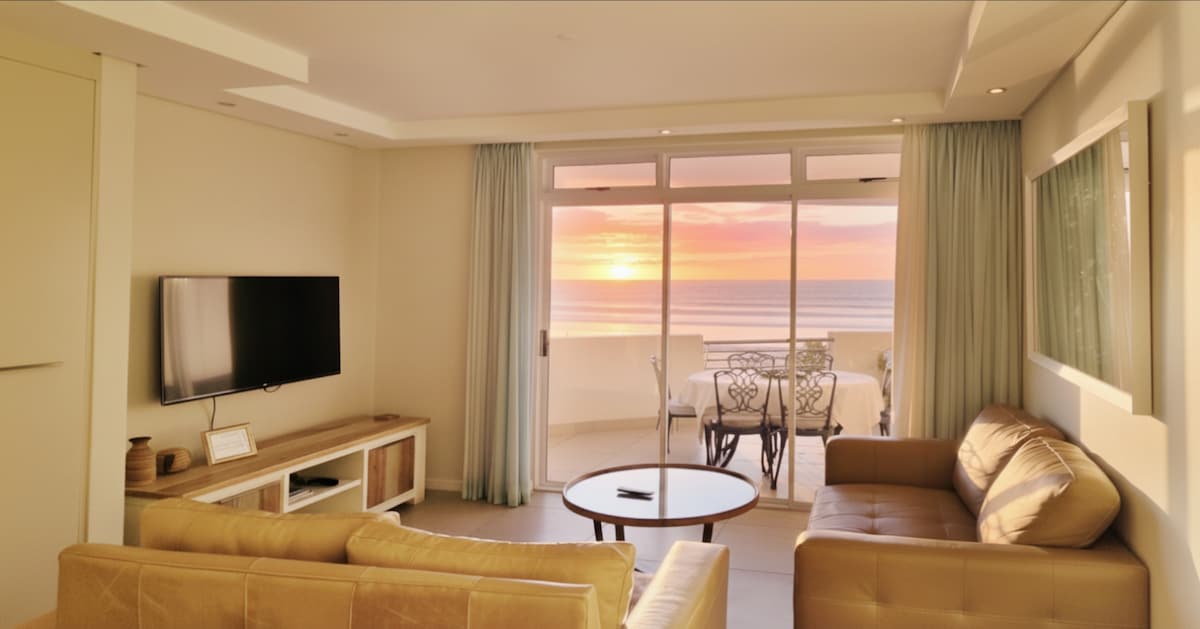 Welcome to this beachfront property. The light and open apartment is an easy 8km from Cape Town's city center. The spacious apartment has direct access to the beach as well as breathtaking table mountain and sea views. Fall asleep to the sound and smell of the ocean and wake up ready to enjoy the pool, Beach and Cape Town's many attractions. Has battery backup for WiFi and TV during load shedding. The following TV streaming services are included: AmazonPrime Video, Disney plus.