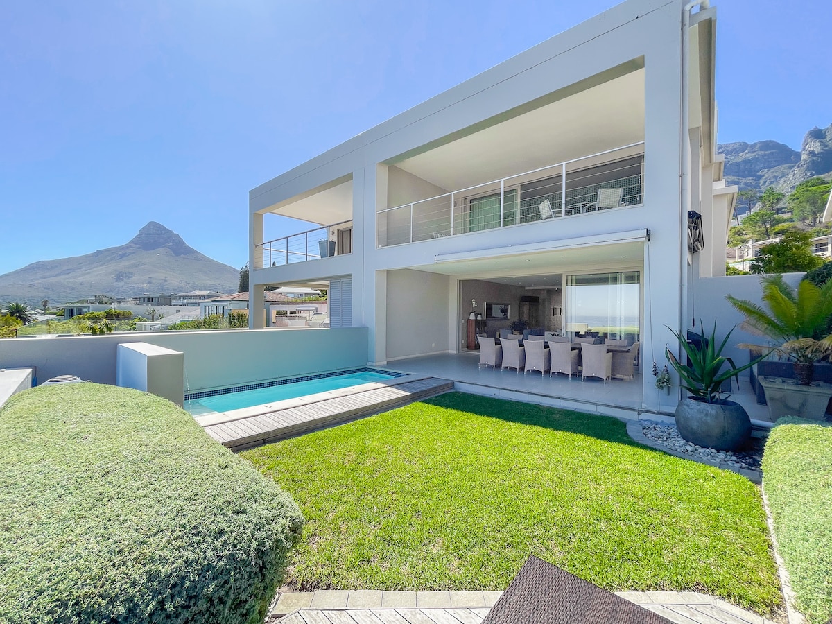 Simply spectacular, newly renovated, spacious home with its own pool offers breathtaking ocean & mountain views. Less than 100 meters to the beach and a short scenic stroll to the famous Camps Bay Promenade with its trendy restaurants & cafes. Comfortably accommodates 10 people with 4 full bathrooms. The home has a new inverter / battery back-up, so functions effectively during any electricity outages (TV's, WiFi, lights, electrical sockets etc). Secure parking is also available