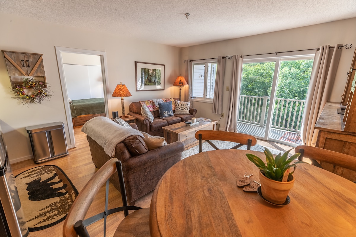 Private / Clean Luxurious but affordable Modern / Updated Relaxing Mountain views from 2nd floor Open concept, this extremely clean, updated rear unit with New furniture. New Gas Fireplace Private balcony, Queen bedroom with additional full sized sleeper in livingroom can accommodate children ( not recommended for adults) The Nordic Inn all inclusive resort facility includes full recreation center Indoor pool ( outdoor in season ) Hot tub, Cardio and weight rooms, Game room Sauna
