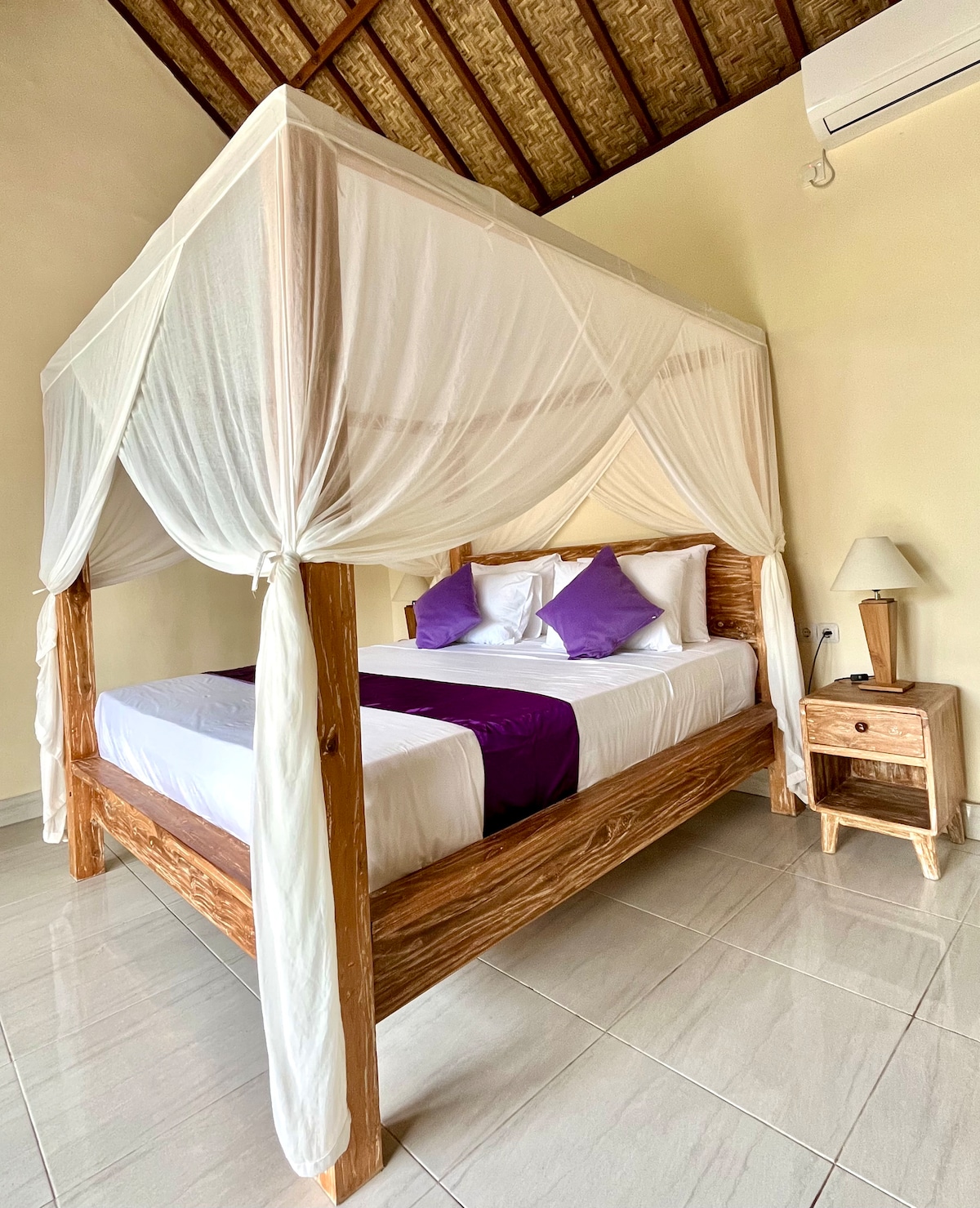 Let your cares slip away in the comfortable pavilion overlooking your private salt-water pool and stunning garden. Rinse off under the rain shower in the large open-air garden bathroom, then relax in the garden pavilion, taking in rice field and tropical garden views. Villa Via is luxurious and private, featuring a spacious bedroom with a king-size 4-poster bed, ensuite dressing room, and bathroom. The living area overlooks the fabulous garden and pool for ultimate relaxation.