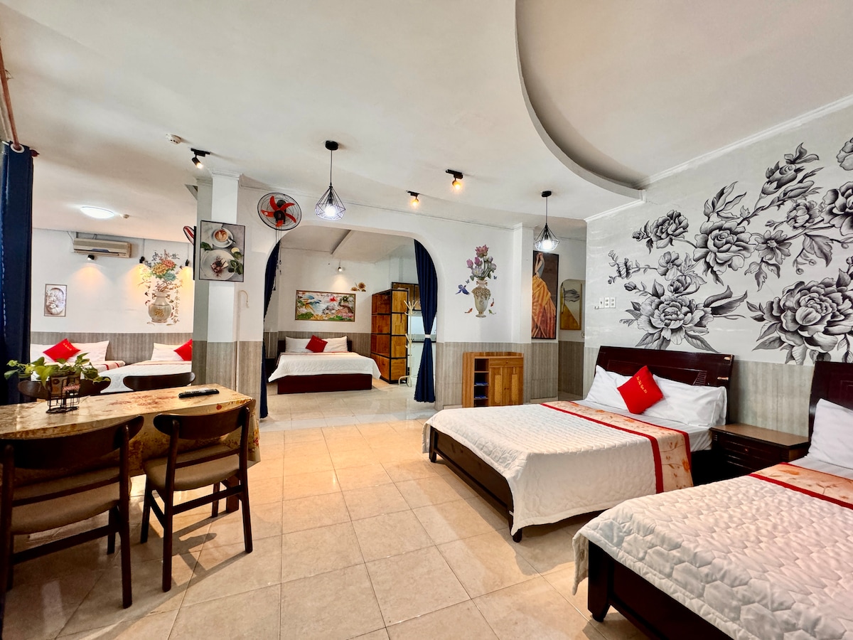 Located in the heart of Ninh Kieu wharf, this expansive apartment-style suite is just a 1-minute walk from the riverfront. It offers the perfect blend of luxury and convenience for large families or groups of 10 guests. It features separate private spaces that allow for individual privacy, while maintaining a large, cozy common area for the whole family to gather and bond during your trip. Fully equipped with modern amenities, it feels like a true “home away from home”.