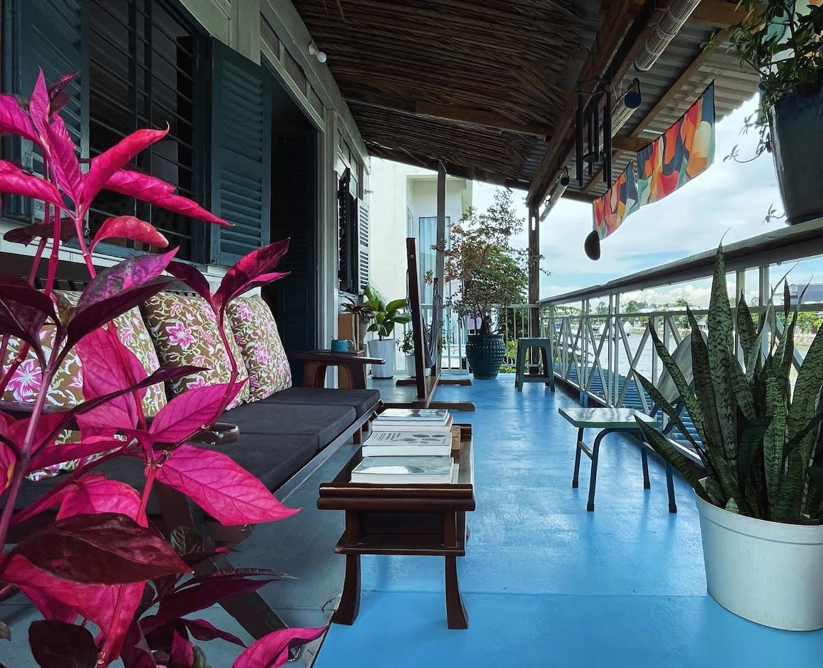 Tucked away on a peaceful branch of the Mekong River, Here Library offers a delightful blend of comfort and adventure. Start your day with the serene river views. Here you can lose yourself in our cozy library that invite you to unwind. Here filled with creative touches from my carpentry workshop, adding a special charm to your stay. Explore nearby market bursting with delicious food, wander through lush fruit gardens and the vibrant rice fields, capture the essence of being here.