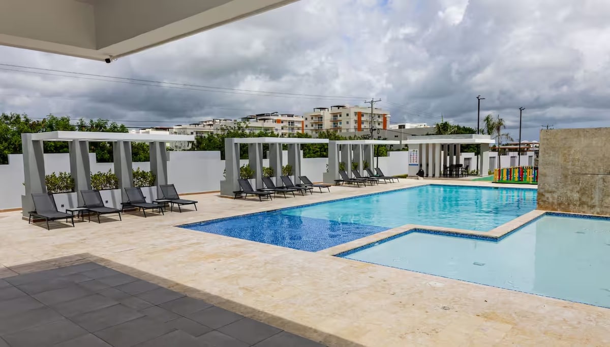 Relájate con toda la familia en este tranquilo lugar en Punta Cana! Disfruta de la comodidad moderna y el lujo, con una piscina refrescante para relajarte después de un día de aventuras. Ubicado en el Centro de Punta Cana, estarás a pocos minutos de las hermosas playas, restaurantes exquisitos y emocionantes actividades. Ya sea que busques una escapada romántica, unas vacaciones familiares o una aventura con amigos, nuestro apartamento ofrece todo lo que necesitas para una estancia perfecta.
