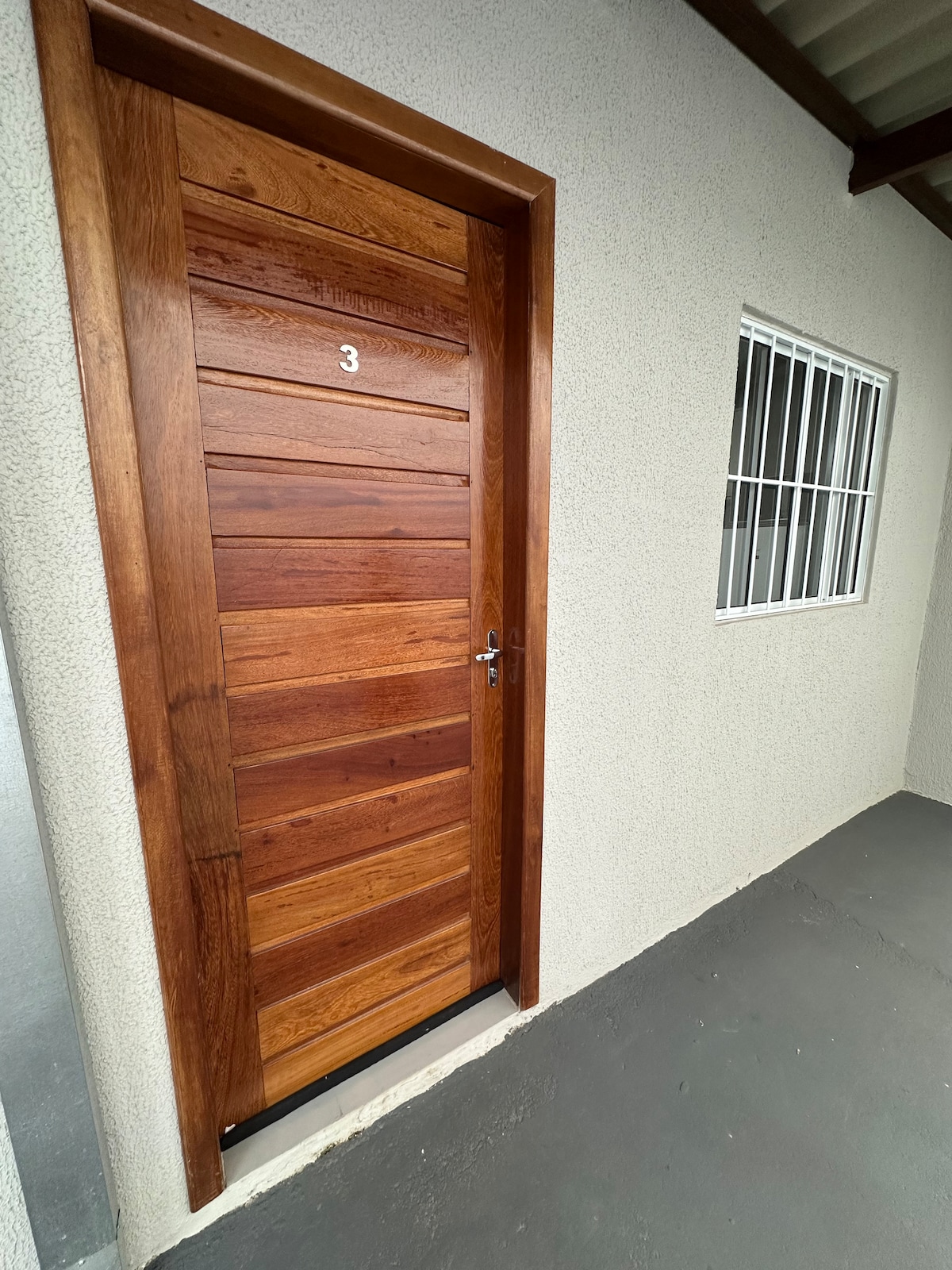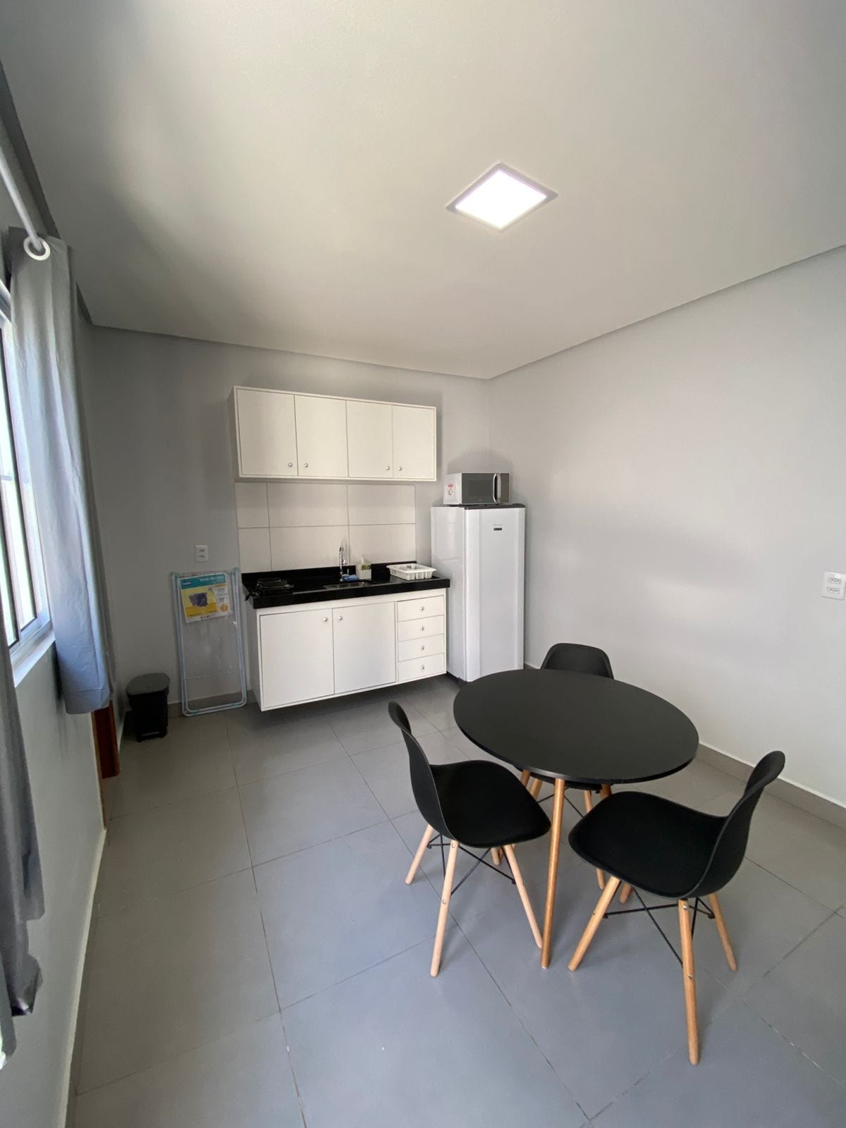 Flat com cozinha, ar condicionado, 1 cama de casal ou 2 de solteiro, chuveiro , tomadas 110 e 220 volts, filtro de água de poço artesiano, Internet e, televisão, geladeira , bancada de granito com duas cadeiras. armário, pipoqueira e utensílios de casa . coberta, travesseiro e fronha e lençol.