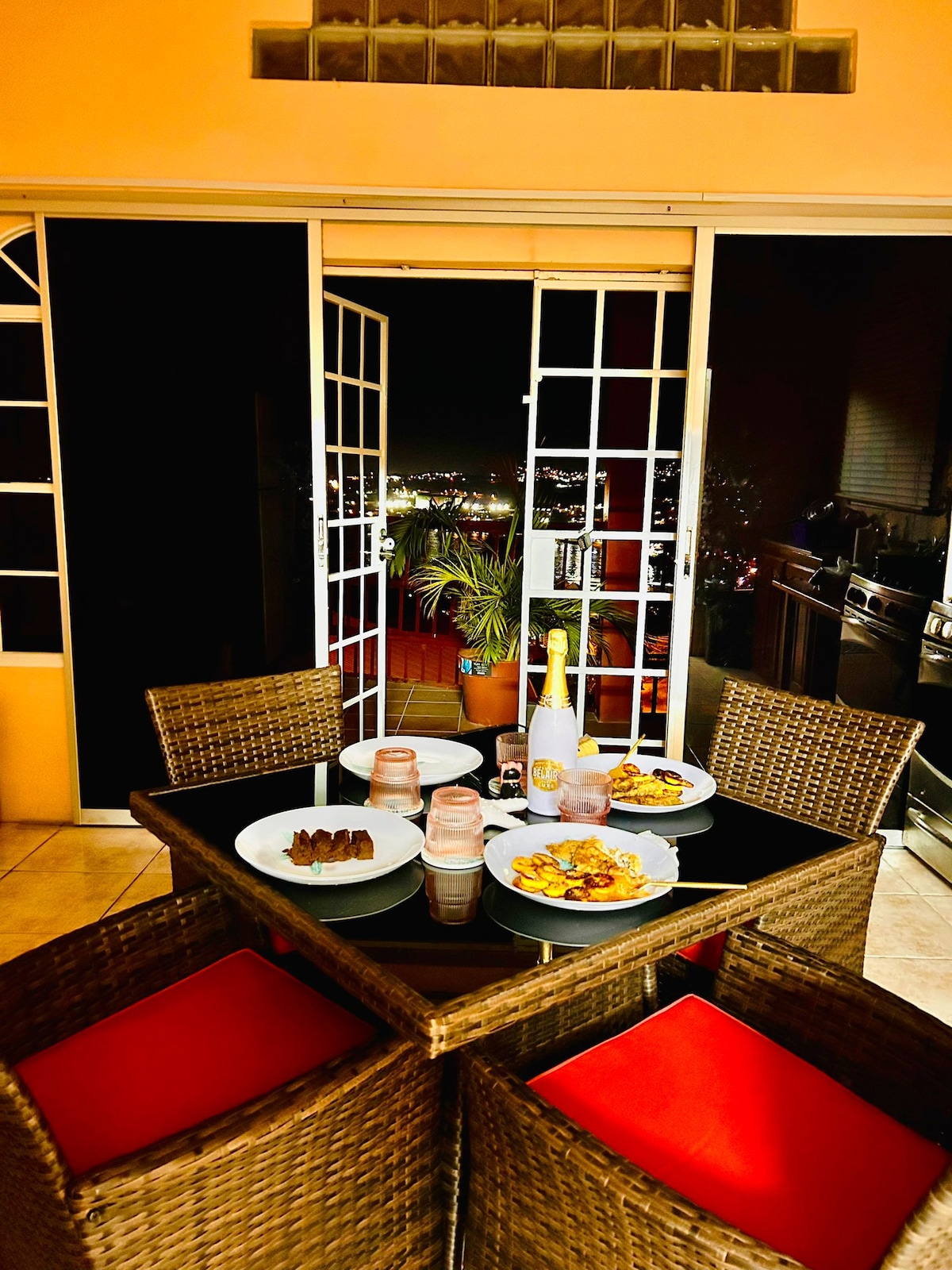 Forget your worries in this elegant, beautiful and relaxing space. Our penthouse is located at Building 9, Apartment 4D. Sip your coffee in our balcony while enjoying the morning island breeze and a view of the pool. You will find delicious doubles just in front of the compound and the best chicken sandwich from Block 22. Enjoy both pools, one in the morning and the other in the evening. There is a gym, one minute away, next to to the food court.