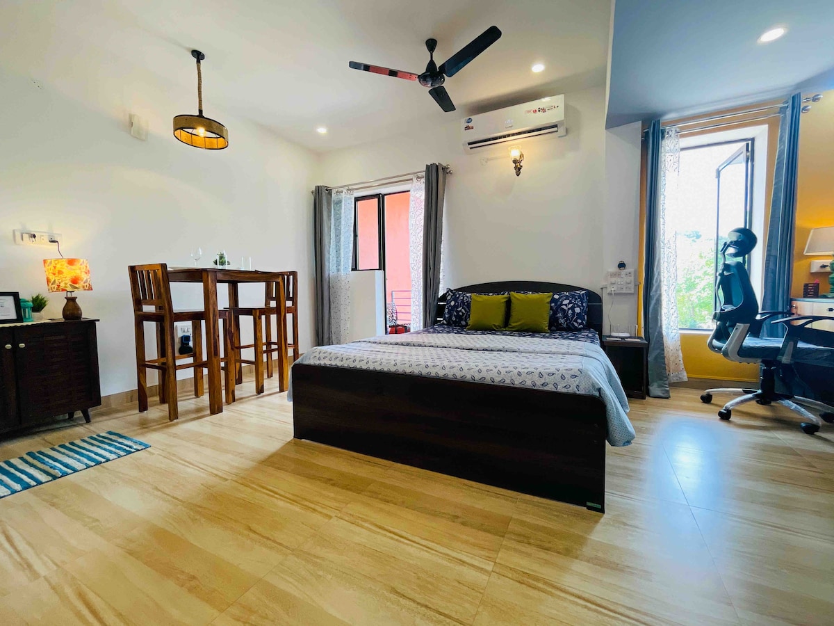 'Studio Serenity' is a cozy & comfy studio apt , just about 5 mins drive from Palolem beach, with local amenities around. Making sure you spend more time on the beach, street shopping, trying cuisines & slipping into 'Susegad' way of life. The apt. is in a gated community with 24x7 security, offers amenities to make your stay comfortable. Enjoy your morning tea sitting in the balcony, looking over the treetops or a mountain view on the other side. Patnem, Agonda, Cola beaches are also near.