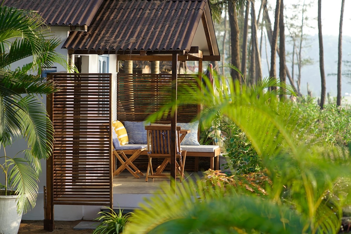 Birds of a Feather presents a Private Goan Cottage – Hornbill in a Peaceful Palm Grove Stay in a in Agonda, South Goa in Agonda, South Goa. My wife and I have designed it thoughtfully with warm lighting, wooden textures, and green accents to give you perfect blend of comfort and nature. Just 800 meters from Agonda Beach, one of Goa’s cleanest and most peaceful shores, it’s the perfect tropical escape to relax, recharge, and soak in the serene Goan vibe. Made with lots of love, just for you!