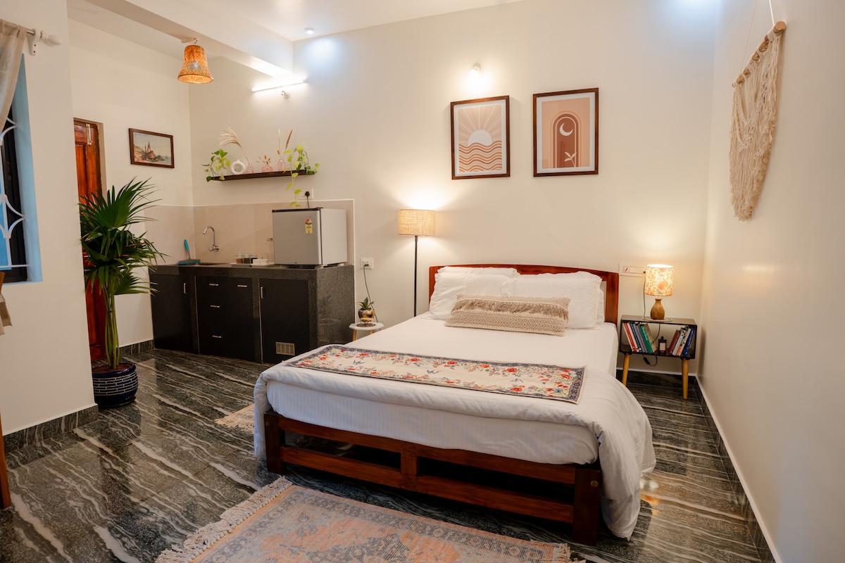 Modern Studio Apartment in the Heart of Patnem – Walk to the Beach! This self-contained premium studio apartment offers a spacious open-plan layout that combines the living room, bedroom, and kitchen into one cozy, well-appointed space. The apartment is fully furnished and thoughtfully designed to meet all your basic needs, whether you're here for a short getaway or an extended stay. Enjoy fast, high-speed Wi-Fi, perfect for remote work or staying connected while you travel.