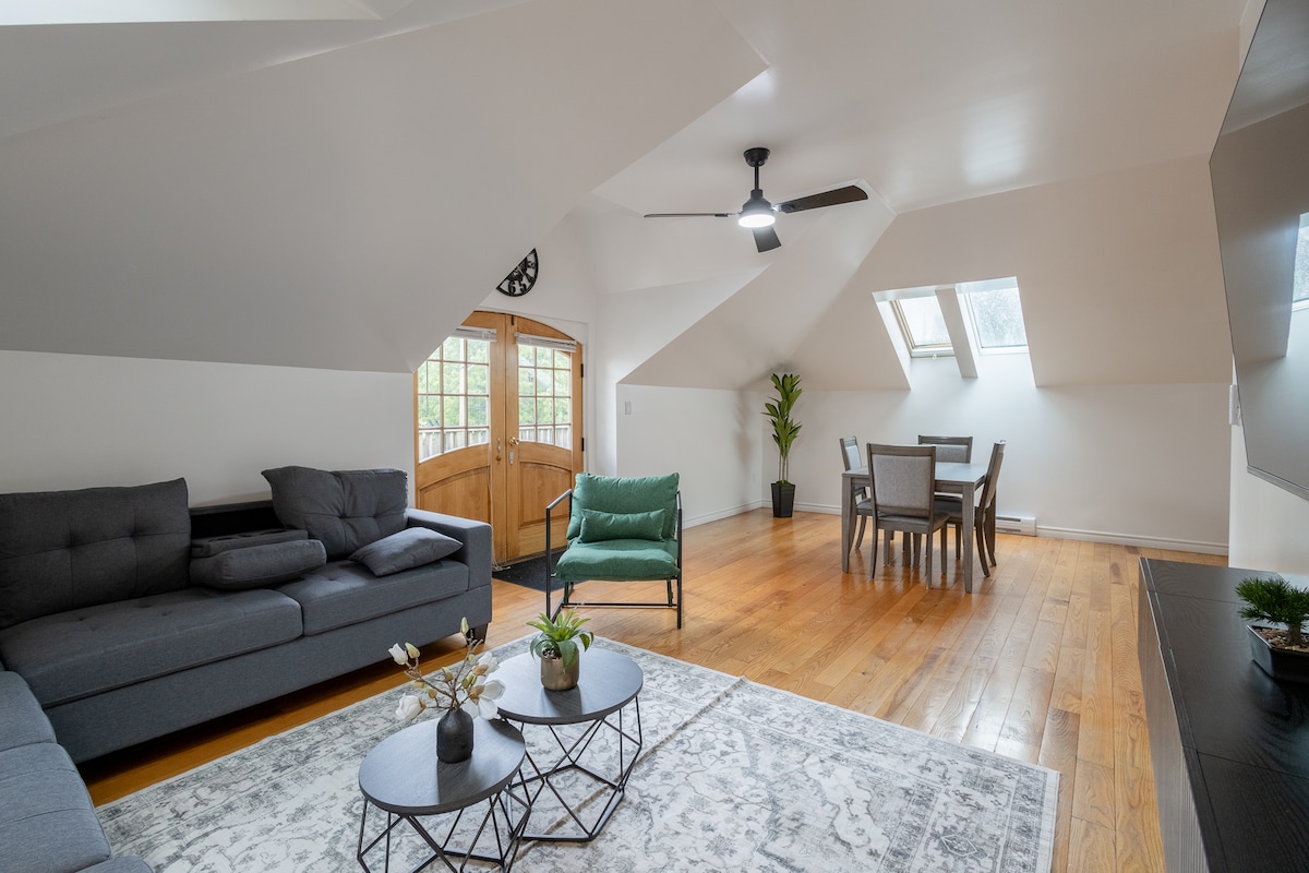 Private second floor apartment above our Coach House style garage on our upscale estate property. We're situated on an acre of land filled with mature trees & chirping birds- you'll have quick access to Wortley Village, downtown & Victoria Hospital. If you love upscale heritage architecture blended with contemporary decor, this is a great spot! My place is good for couples, solo adventurers, and business travellers. 15% weekly, 30% monthly discount, 30+ day stays exempt from 13% occupancy tax