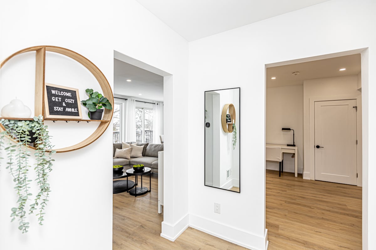 Welcome to our charming main floor apartment in the beautiful city of Orillia! This space is is suitable for families or small groups looking for a comfortable stay in a convenient location. This is a fully furnished home that features three bedrooms, one bathroom, a fully equipped kitchen with all the essentials needed to prepare your own meals. The living room is bright and cozy with a 43" Samsung Smart TV including Netflix, unlimited high speed internet and a spacious 6 seater dining table.