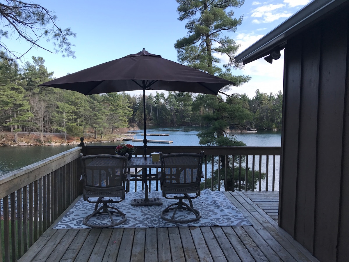 This tiny luxury 2 bedroom cottage is perfect for a romantic couple or small family getaway. Nestled on 1.5 acres among majestic trees and granite outcrops, creates beautiful views from the deck with BBQ, fire pit, hot tub or massive windows throughout the cottage. Water dam and river across the road create relaxing waterfall sounds that are heard from deck or enjoy it close up from the private shoreline deck and dock. Explore the Muskoka River on the kayak, SUP or river tubes.