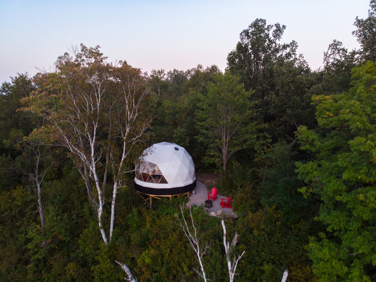 Reconnect with nature and each other at this unforgettable river side escape. a stunning geodesic dome camping experience awaits you…sleep under the stars, enjoy a campfire overlooking the peaceful river, sip your morning coffee on your own private dock (seasonal), get ready to unplug and relax in all the best ways. Remember, you'll be super camping so expected camping things like bugs and an outhouse :), in the winter months it can be chilly, and in the summer can get hot.