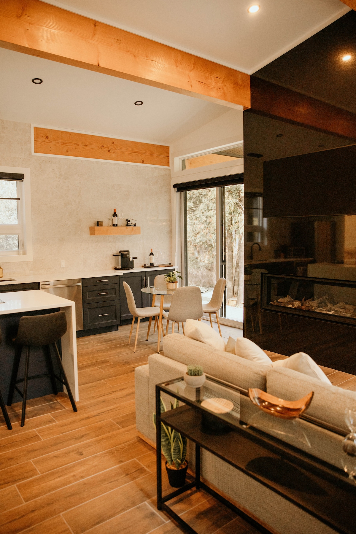Welcome to La Khabine! This cozy, modern cabin comes with all you need to relax and connect with nature. Enjoy a glass of wine with the sound of a crackling fire in the wood burning fireplace. Take in the view of the forest through the surrounding floor to ceiling windows. Relax in the private outdoor cedar barrel sauna. Natural self-care products, firewood, laundry soap, and high-speed Wi-Fi are all complimentary. We hope you'll love our little cabin of windows as much as we do :)