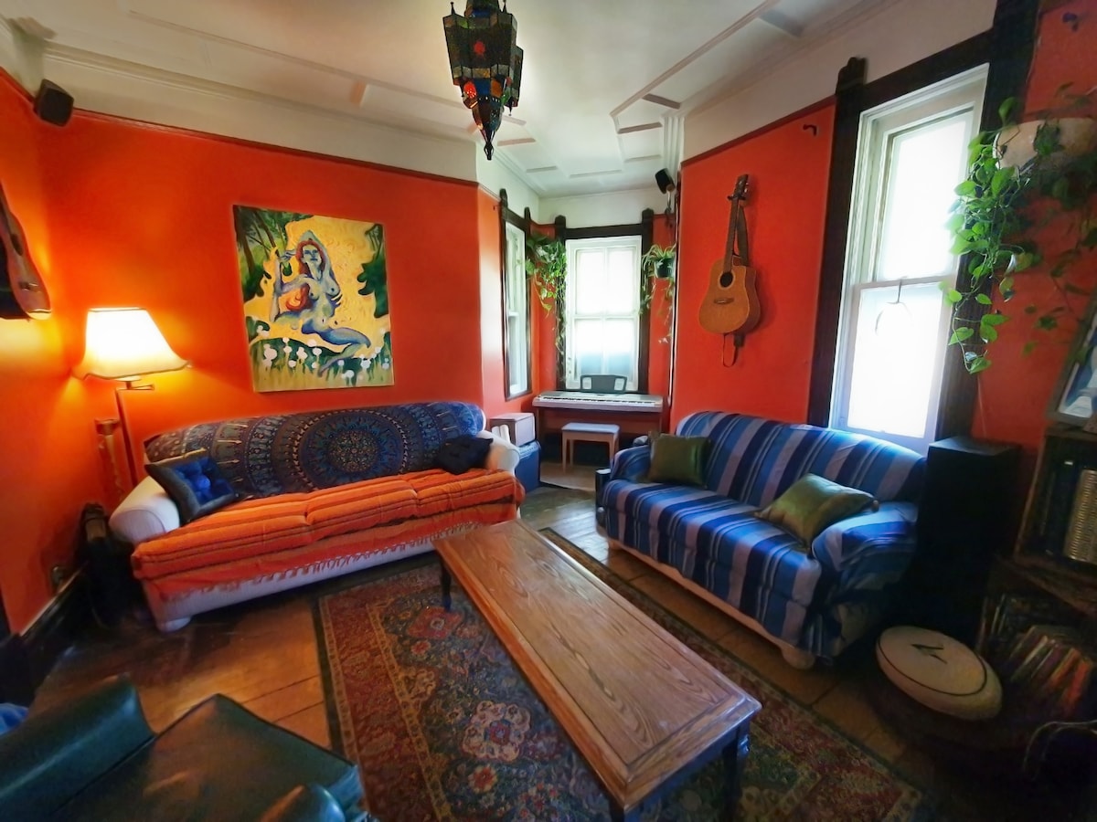 Enjoy the warmth and elegance of the Fireplace Room at Le Salon des Inconnus, our most luxurious accommodation in a beautifully preserved 1898 Victorian manor. This room features a private bathroom and a fireplace—perfect for relaxing evenings, romantic getaways, or anyone seeking a refined, comfortable retreat.