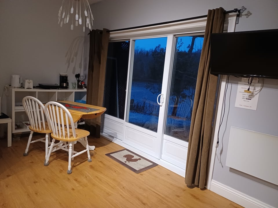 Simplifiez-vous la vie en restant dans ce logement tranquille et bien situé. - Spa extérieur avec vue imprenable sur le Lac Saint-Jean. Accessible l’hiver - Accès direct sur la véloroute des bleuets et la piste de motoneige. Garage sécurisé pour 4 motoneiges! - Épicerie - Boulangerie / fromagerie - Microbrasserie - Restaurant - Club de golf Stationnement privé avec entrée indépendante. Peux accueillir 4 personnes avec commodités incluses. Bienvenue à tous !