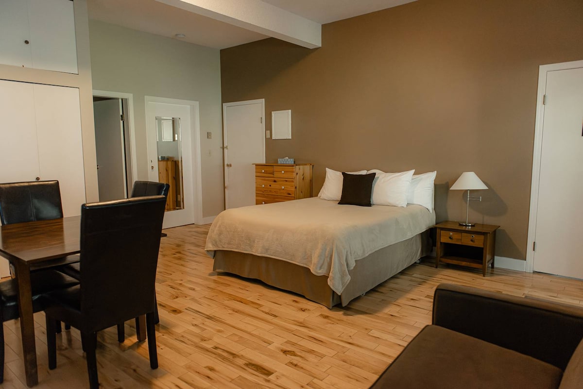 Chambre dans complexe hôtelier. Accès au Lac Moore et aux installations de l'Auberge Manitonga qui offre un bar et un pit à pit. Station Tremblant, piste cyclable, sentiers de vélo de montagne, parc, plage et restaurants à proximité. Navette gratuite vers montagne et centre-ville. Possibilité de location d'embarcations nautiques.
