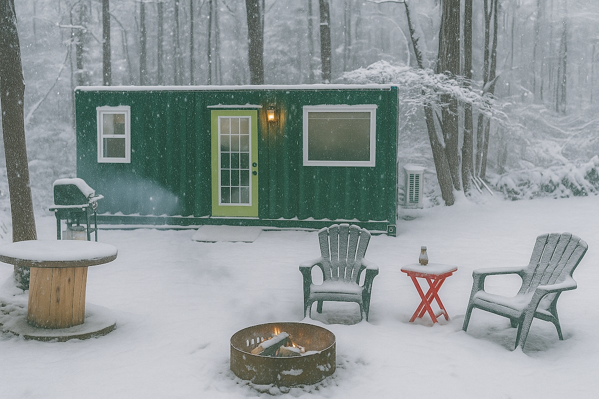 Experience a unique waterfront getaway at our Shipping Container Camp ! Our converted shipping containers have been transformed into cozy, modern cabins, each offering stunning water views. With on-site kayaks, and a private dock, you can immerse yourself in aquatic adventures right from your door. Inside your container, you'll find a stylish, living space with a comfortable bed, a compact kitchen, and a modern bathroom. Relax in the hot tub or gather around the fire for a night of stargazing