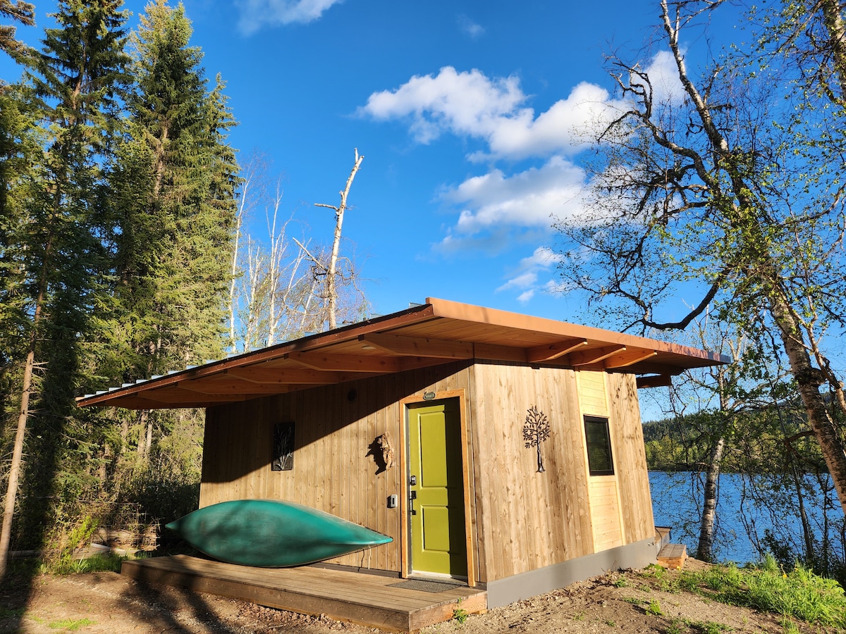 Feel rested and at peace when you stay in the rustic gem of a cabin, the Lazy Larch. This self-contained 230 sq. ft. retreat offers cozy charm. Nestled in a small field, it boasts stunning views of the trout pond and breathtaking sunsets from the expansive deck. Cross-country ski or snowshoe right from your doorstep, with 2 to 5 km of trails. This safe, family-friendly property welcomes pets, and in summer, you can even bring your horse along for a day trip to the backcountry.