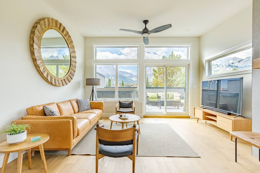 *No Fees* We pay the 15.5% Airbnb Service Fee Welcome to our mountain retreat in the heart of Canmore! Our unit offers a perfect blend of modern comfort and nature's tranquility. Modern Scandinavian furnishings meet the warmth of nature-inspired décor. The Living room and kitchen offer mountain views and best of all the location is walking distance to everything you need. Book your stay at our family-friendly mountain retreat and create lasting memories amid the beauty of Canmore. Welcome home!