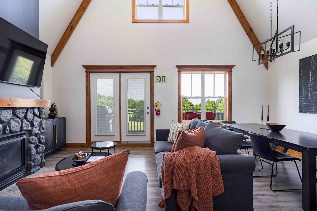 BOOK 2 NIGHTS GET 1 FREE! (Inquire about dates) Beautiful views of Monterra golf Course! Come out and stay at our chalet and enjoy the weekend on the hills or in the village. Modern 2 bedroom 2 bath chalet located minutes from Blue Mountain and on the Blue Mountain shuttle route. Sleeps up to 6 comfortably with pull out couch in main living area LCSTR20220000175