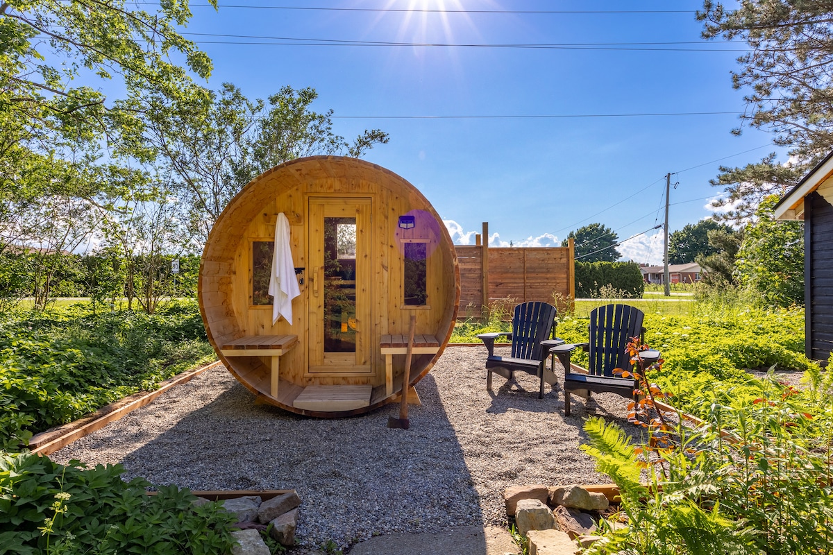 Welcome to Vineyard Views, a pet-friendly modern farmhouse nestled on half acre in Niagara wine country! Renovated in 2022, this raised bungalow is a 5 min drive to Old Town NOTL. We are minutes to numerous wineries & all that Niagara-on-the-Lake has to offer. Our beautiful home is set up for watching stunning sunsets, hosting guests & is perfect for both families & friends. A backyard oasis with sauna, bocce ball court, conversational circle, patio dining set, large lawn, BBQ, privacy & more!