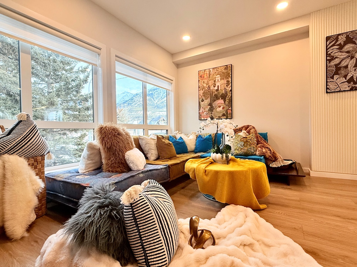 *No Fees* We pay the 14% Airbnb Service Fee! Welcome to our mountain retreat in the heart of Canmore! Our unit offers a perfect blend of modern comfort and nature's tranquility. Modern Scandinavian furnishings meet the warmth of nature-inspired décor. The Living room and kitchen offer mountain views and best of all the location is walking distance to everything you need. Book your stay at our family-friendly mountain retreat and create lasting memories amid the beauty of Canmore. Welcome home!