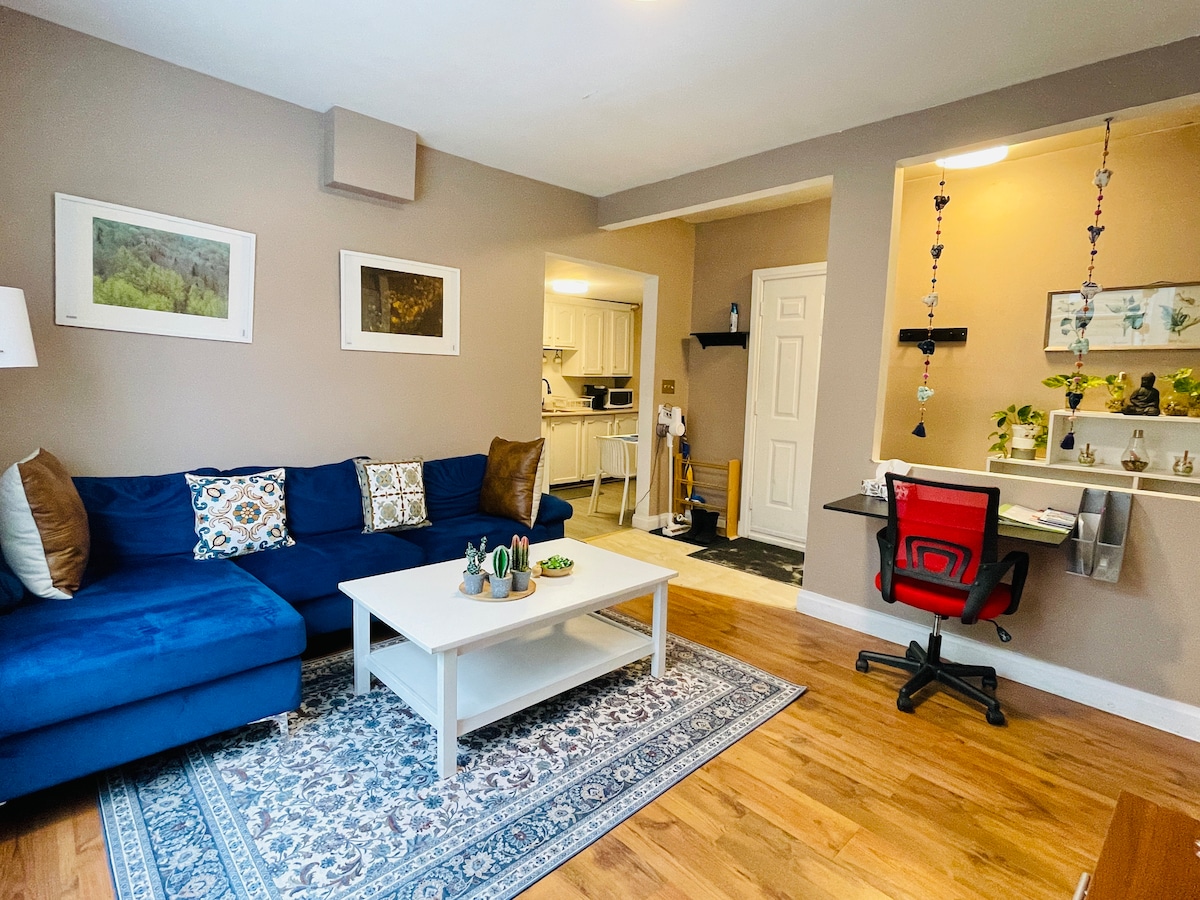 Welcome to Bay Side! Private extra large 1 bedroom apartment with full size kitchen situated in a mature neighborhood downtown Ottawa. The bike path is directly situated in front of the home. Located within less of a 30 min walking distance to the canal, museums, government buildings, shops, restaurants and grocery stores. Bright space, hardwood floors, wifi, Smart TV, AC/Heat, king size bed, remodeled kitchen with porch overlooking the garden. Nothing is shared. Cleaning fees included.
