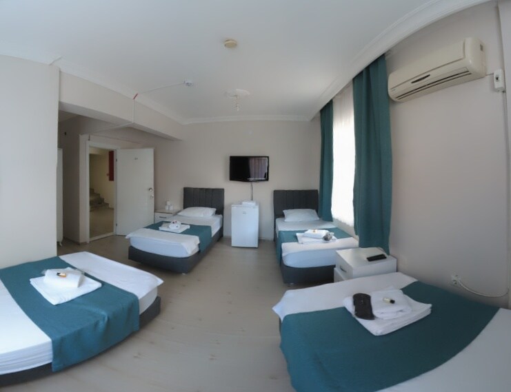Aile odalarımız çift kişilik yatağı ve tek kişilik yatağı olan klimalı buzdolabı tv ve banyo+wc odalarımızdır.