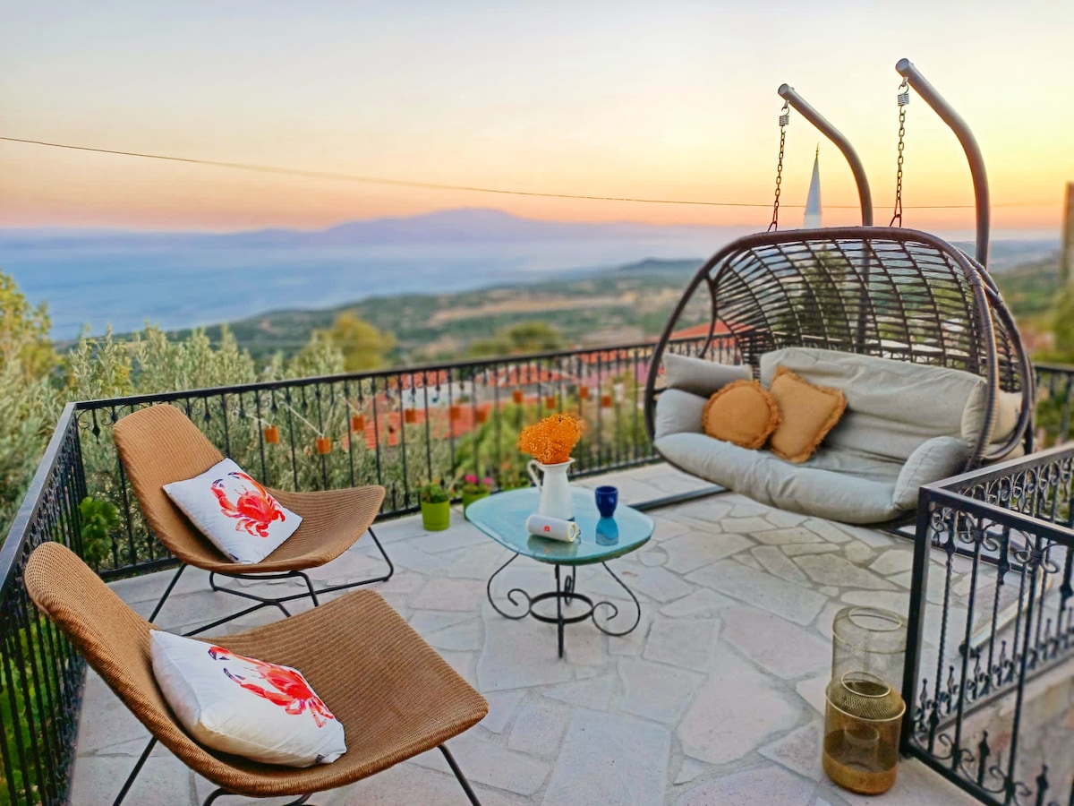 Zeytinlik içerisinde yer alan, şebekeye tamamen kapalı (off grid) bir evdir. Enerjisini güneşten, suyunu yağmurdan alır. Bahar aylarında bahçe tamamen kır çiçekleriyle kaplı olur. Bahçenin üst kotlarında ve evin önündeki terasta, bir tarafta muhteşem Midilli manzarası, diğer tarafta dağ ve vadi manzarası vardır. Gün içinde uzun doğa yürüyüşleri yapabilirsiniz, 5dk yürüme mesafesinde denize girebilirsiniz. Kuş sesleri dışında ses duymadığınız bir evde uyanmanın keyfini çıkarabilirsiniz.