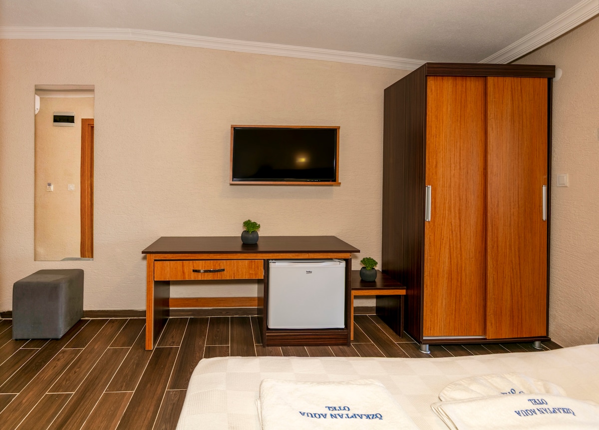 Throughout your stay, you will enjoy a comfortable and pleasant holiday in our rooms, thoughtfully designed with your comfort in mind. Our eco-mini rooms, featuring a double bed and 10 square meters of space, are an ideal choice for those who prefer an economical and minimalist holiday experience. As with all our rooms, they are equipped with air conditioning, a mini fridge, a TV, and a private bathroom.