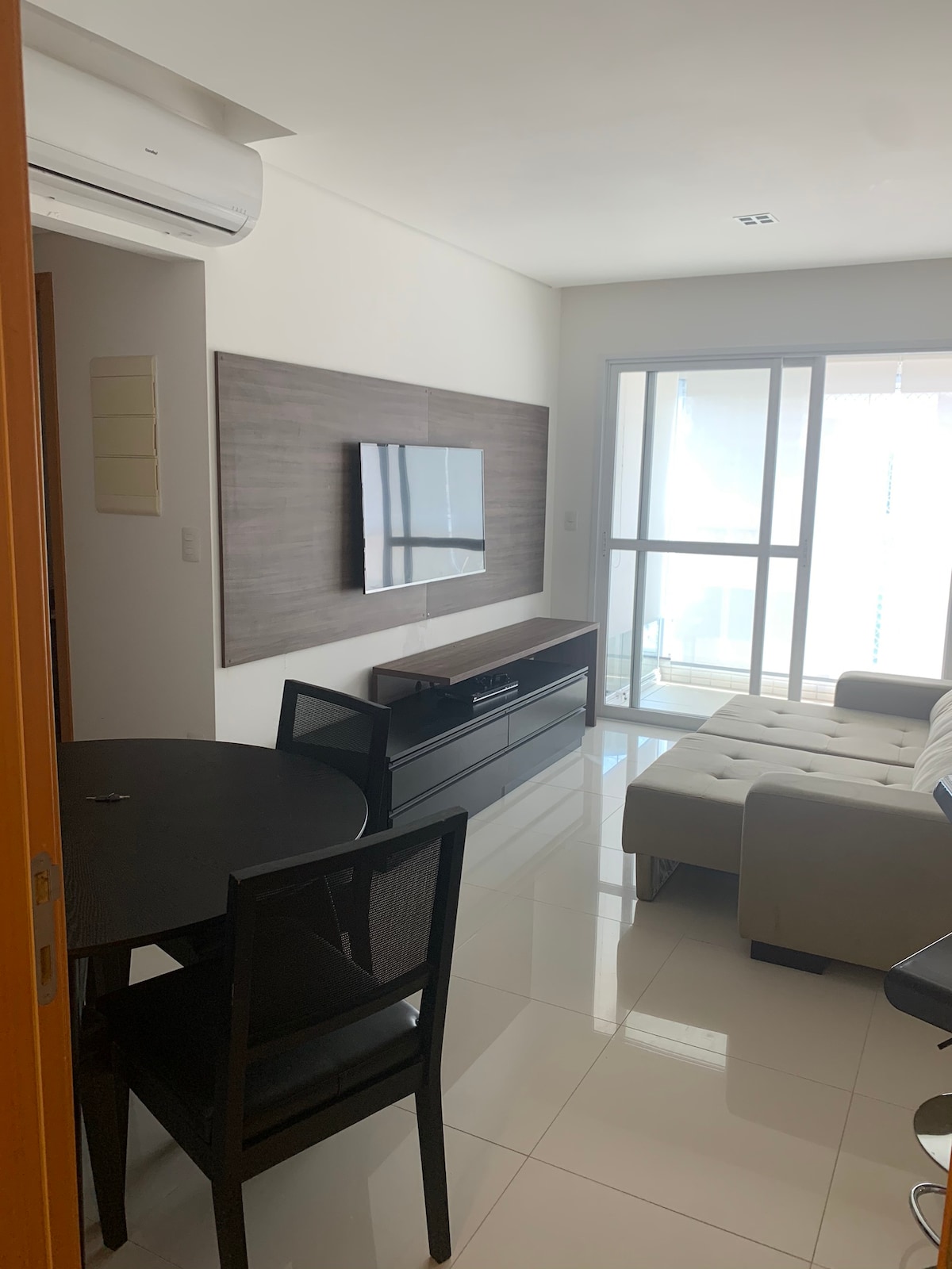 Apartment 1808 is simply amazing! It has a panoramic view on the 18th floor, a glazed balcony perfect for staying with children, in addition to having 2 bedrooms, 1 with a double bed and the other bedroom with a bunk bed with auxiliary, perfect to accommodate a family of up to 5 people. Small and medium-sized dogs weighing up to 15 kg are accepted for an additional fee of R$ 120.00. Cats are not accepted. AIR CONDITIONING ON THE BALCONY DOESN'T WORK THERE IS A FAN