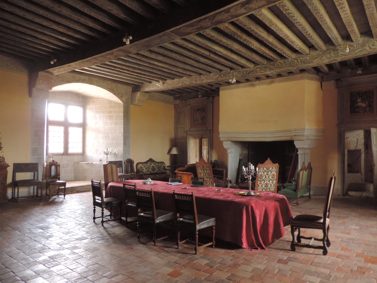 Discover castle life and share the experience of Quentin & Marjorie, who purchased the property in 2021 and have been continuously restoring the property ever since. Stay in an dovecote! Ideal for 4 pers (6max). Ground floor: kitchen+living room+shower room/WC +1: 1 bedroom (1 double bed+2 single beds) NO TV/NO WIFI LINEN/TOWELS PROVIDED +UNIQUE: Swimming pool in a barn, OPEN FROM MAY TO SEPTEMBER, heated to 34°C, shared space +PARTS OK: 2 other houses on site (2x5 pers)+communal dining room