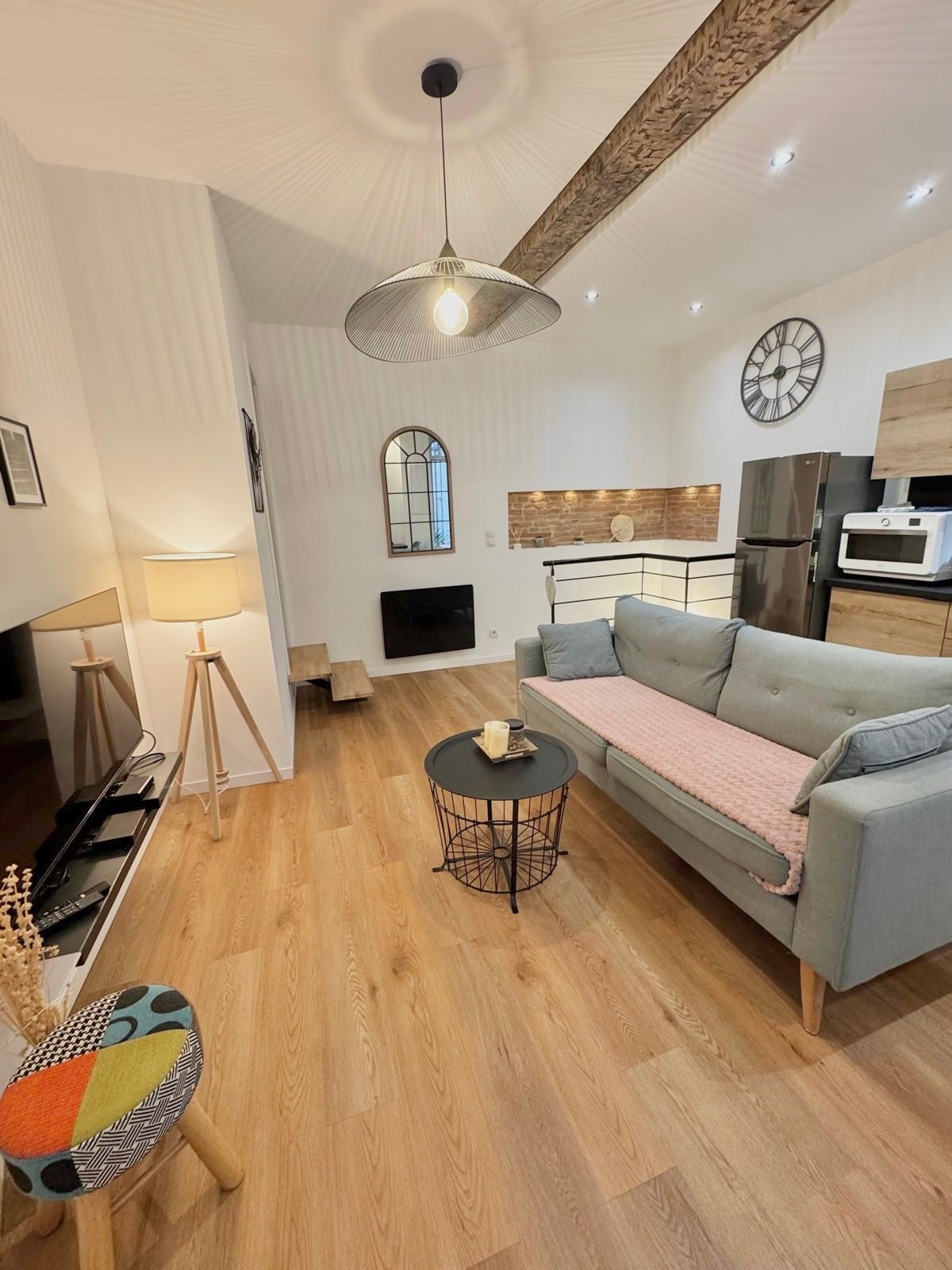 Au rez-de-chaussée d'un immeuble ancien, ce superbe loft de 65 m2 est situé dans la Bastide Saint Louis de Carcassonne, coeur de la ville, à 20 minutes à pied de la Cité Médiévale. À 5 minutes à pied de la gare de Carcassonne et du Canal du Midi, proche de tous commerces et commodités, l'appartement est idéalement placé pour profiter de la ville à pied.