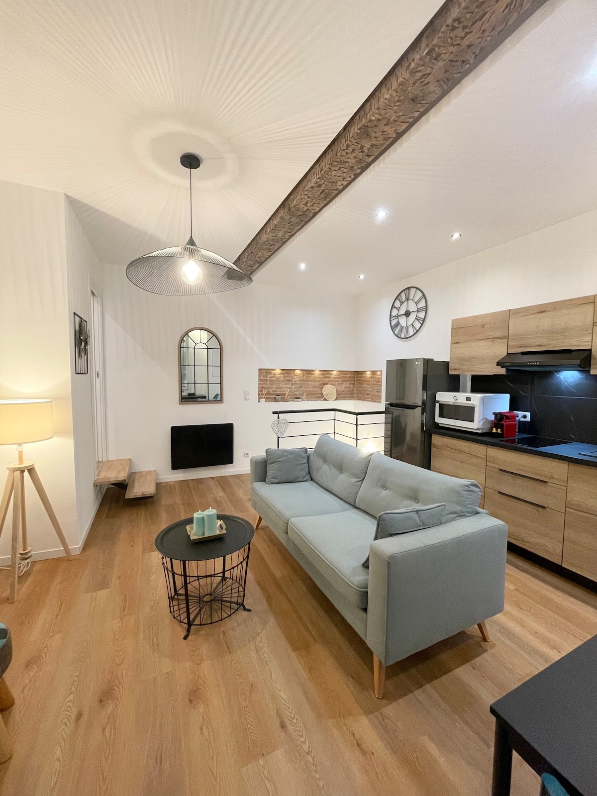 Au rez-de-chaussée d'un immeuble ancien, ce superbe loft de 65 m2 est situé dans la Bastide Saint Louis de Carcassonne, coeur de la ville, à 20 minutes à pied de la Cité Médiévale. À 5 minutes à pied de la gare de Carcassonne et du Canal du Midi, proche de tous commerces et commodités, l'appartement est idéalement placé pour profiter de la ville à pied.